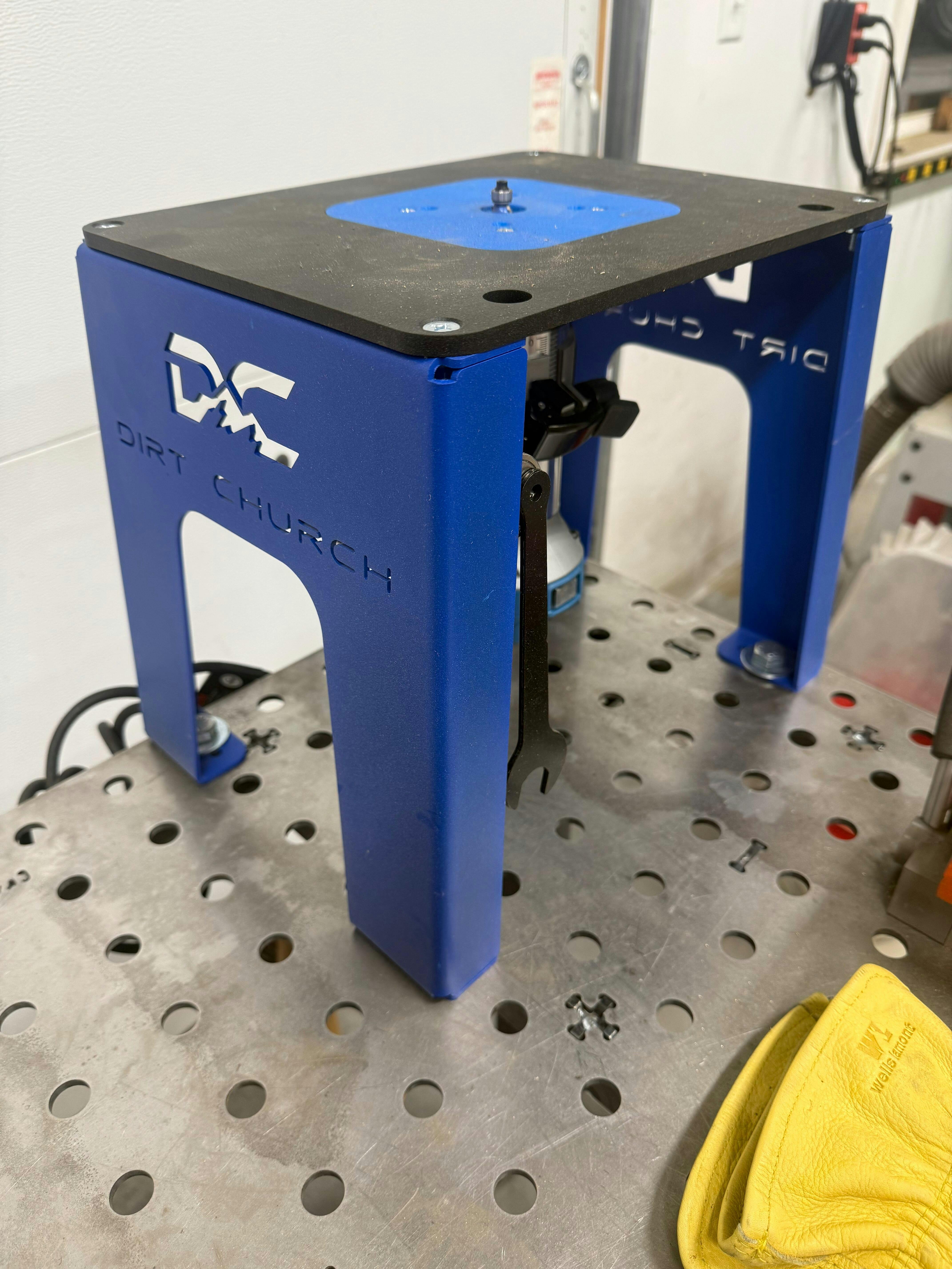 Looking for a solid, reliable mounting table for your handheld router? This setup pairs perfectly with the Dirt Church Beveling Bit and makes it easier to bring your material to the tool—giving you a clear view of your work instead of fighting for visibility under a bulky router base.